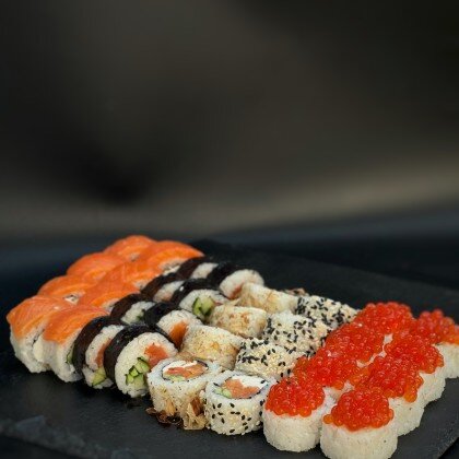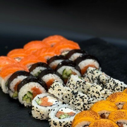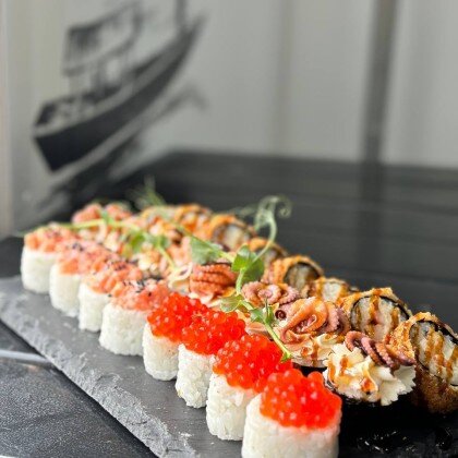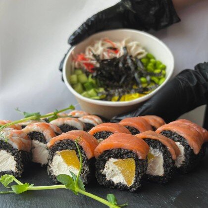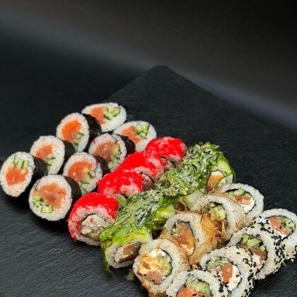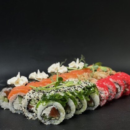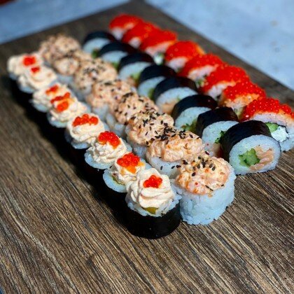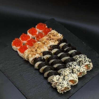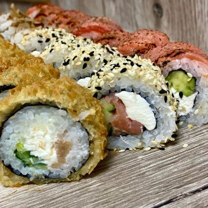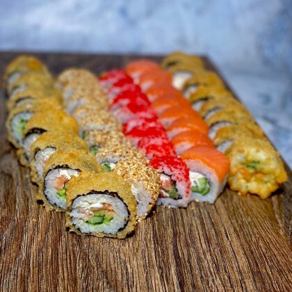 классический с авокадо и форелью, классический с тунцом, запечённый снежный краб, запечённый с курицей