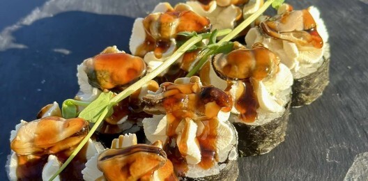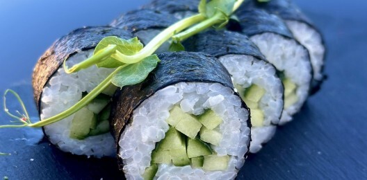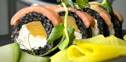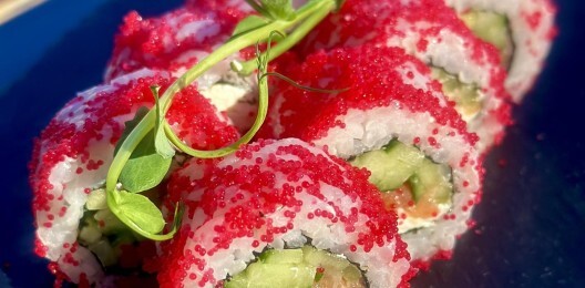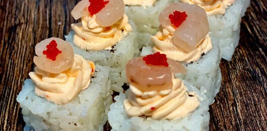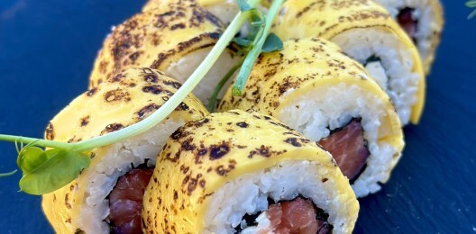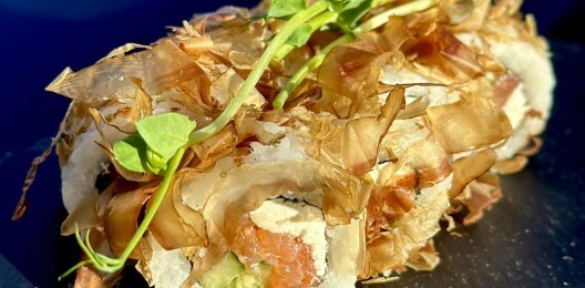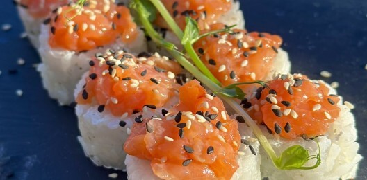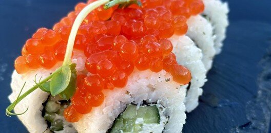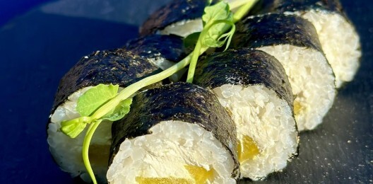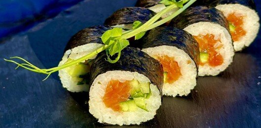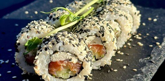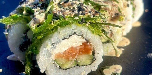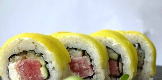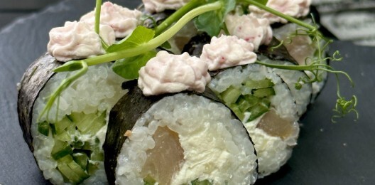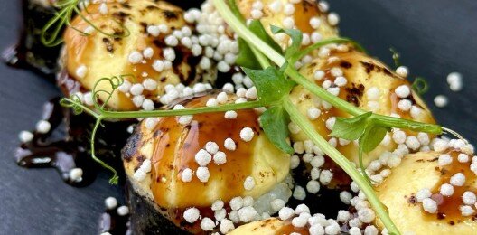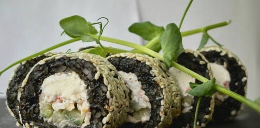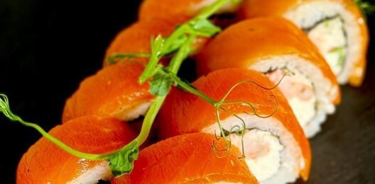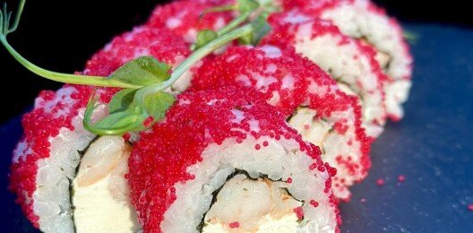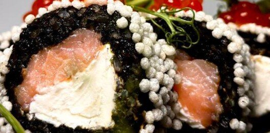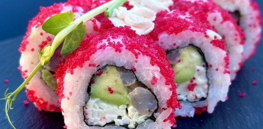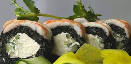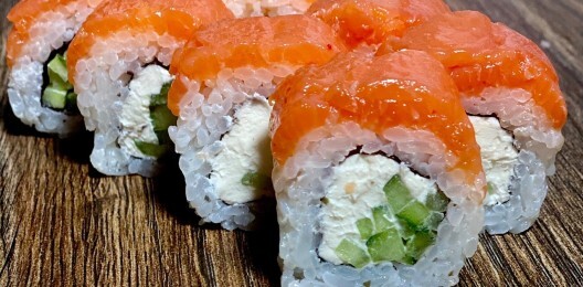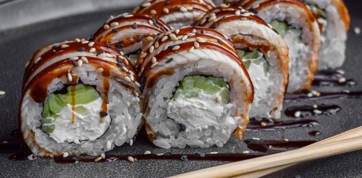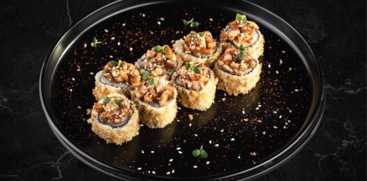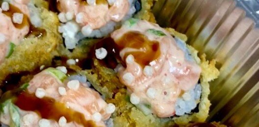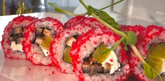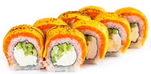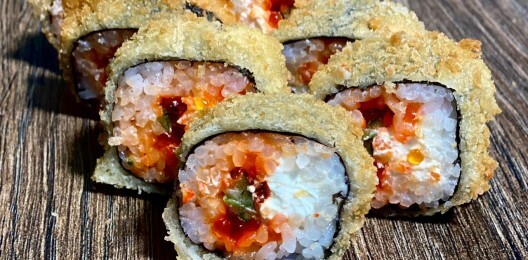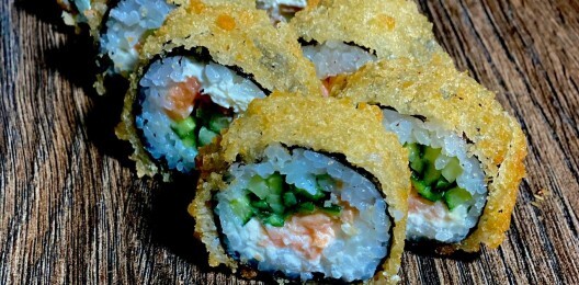 Рис,нори,творожный сыр,фирменный соус,лосось с/с,спаржа,тобика,темпурная смесь,сухари панко,соус терияки
