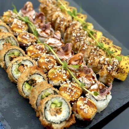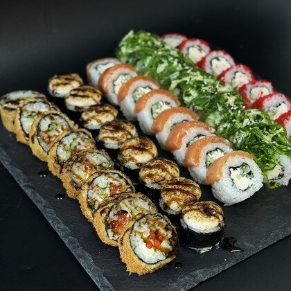 🍣 Филадельфия 8 шт, 🍣 Грин 4 шт, 🍣 Рэд 4 шт., 🍣 Чиз 4 шт., 🍣 Бонито 4 шт., 🍣 Фиона 8 шт.